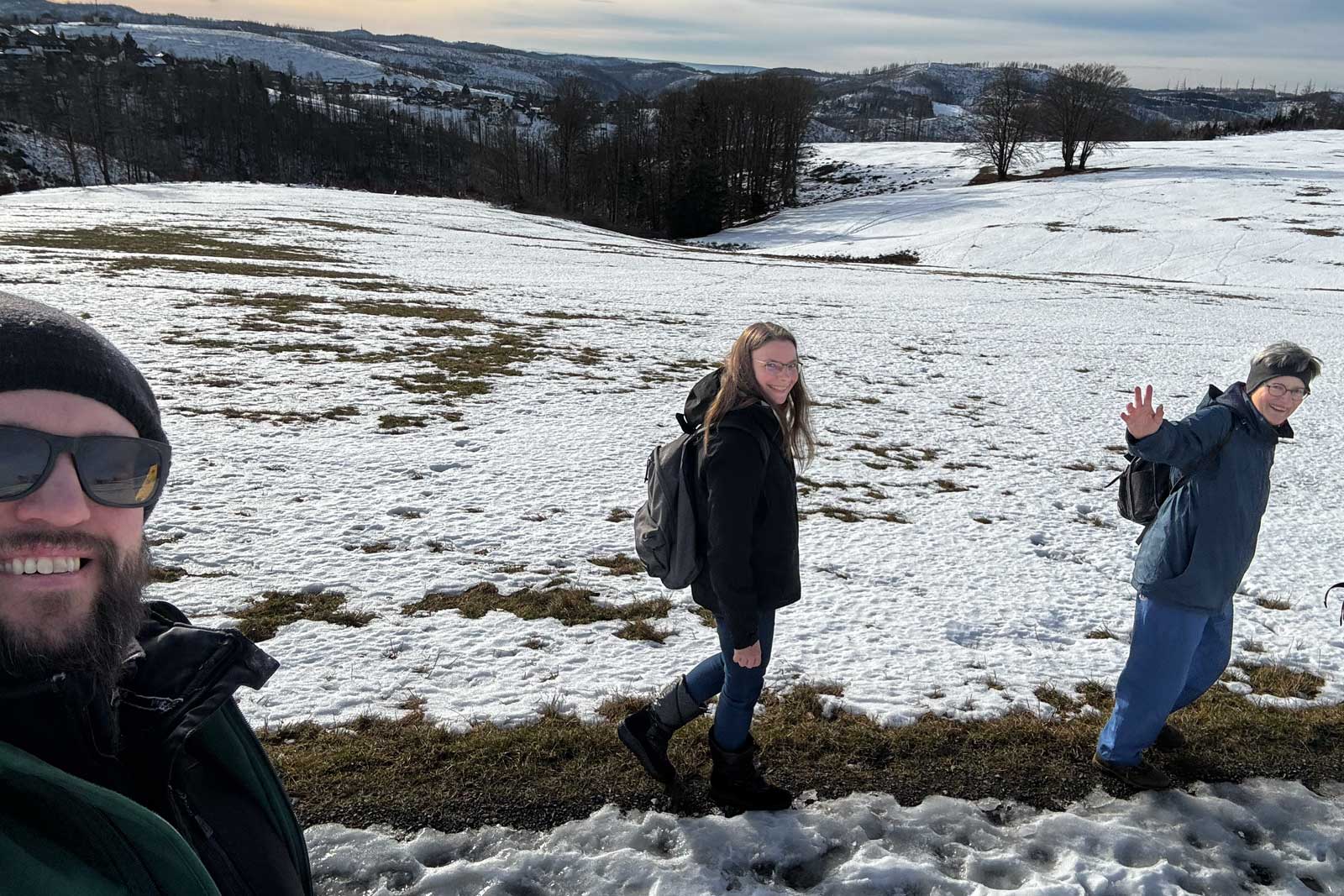 Der Weg führte zum Wegekreuz Treibholz mit der Kurt-Reulecke-Hütte, von dort weiter auf dem Siebenbürger Planweg entlang des Siebertals und über den Sieberberg zurück. In der Kurt-Reulecke-Hütte gab es eine willkommene Stärkung mit Nüssen, Energyballs und warmem Tee. Aufgrund der windigen Verhältnisse – bedingt durch den lichten Baumbestand – wurde die Rast kurz gehalten, bevor es zurück nach St. Andreasberg ging.